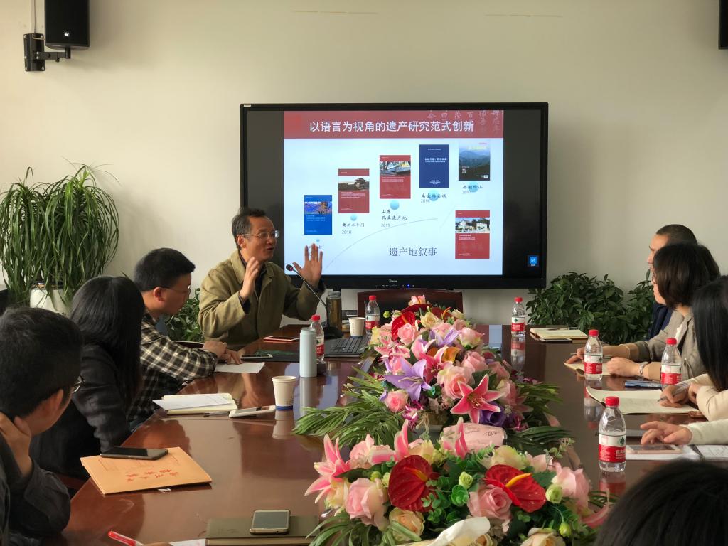 5月9日上午9时,外国语学院有幸邀请到世界银行遗产项目咨询专家、浙大博导吴宗杰教授莅临北校1幢213学术交流中心作了一场题为“乡村文化记忆与遗产地书写”的罗山讲堂学术讲座。讲座在席留生副院长热情洋溢的欢迎辞中拉开帷幕,随后吴教授简明扼要地讲述了自己的学术历程,其研究肇始于应用语言学,进则拓展至中国语境下的批判话语学,并以语言为主线,跨越众多的人文社会科学学科,铸就自己独特的研究风貌,进而在文化话语、文化记忆与遗产、历史民族志、跨文化传播、教育话语等领域的国内外顶尖期刊发表了一系列重要著述。接着吴教授以“为什么用文化记忆而非文化遗产去谈论乡村文化保护?”、“中国本土的遗产观是什么?”等问题正式导入讲座要义,他认为文化记忆具有“流动性、政治性、资源性、在地性”等特点,进而系统梳理了文化记忆与文化遗产的个中区别,并指出遗产地书写是一种文化话语视角下的遗产意义建构。再则,吴教授通过展示自己主持完成的“东坞山村”、“山东孔孟遗产地”、“衢州水亭门”、“西湖释山”、“邹鲁古道”等遗产项目,着重释说了人文社会科学研究主动对接当下社会的重要意义,并以温州府志书写为例,引出了以语言为视角的遗产研究之体例、范式创新。最后,与会者在热烈的答询互动中得到了极大的思维洗练和涤荡。