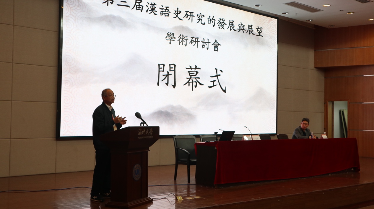 最后,浙江大学方一新教授致闭幕辞。方教授满怀深情地回顾了历次研讨会的召开情况,对承办方以及与会专家学者表示衷心感谢,对参会硕博士生的论文汇报以及“新云”汉语史青年论文成果奖获得者提出表扬并寄予厚望。