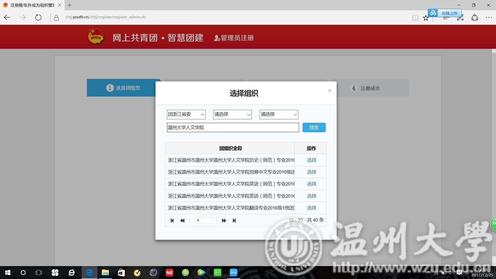 (1) 选择“团浙江省委”,输入“565net必赢客户端”,点击“搜索”。