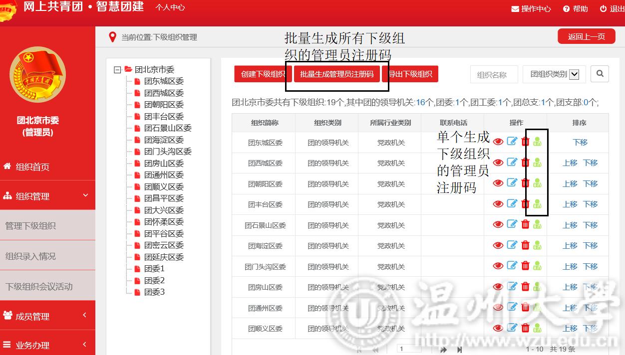 (四)生成直属下级团组织管理员注册码